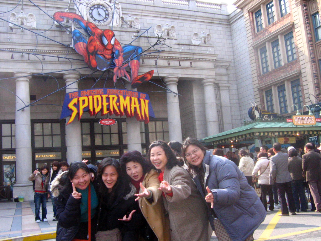 這當中有件事情很好笑,我們去玩回到未來,終於進到那個箱子裡準備要坐上車,後面的服務人員大概講了有三五分鐘的一長串日文,而當他終於發現這一箱的人完全沒有任何反應的時候,問了一句:有人聽得懂日文嗎(我只聽得懂他的這一句),我姐用日文回他:日文完全不懂;那個服務員停頓了一下說:英文OK嗎?之後他只用了兩句英文表達完他講了五分鐘的日文:empty the pocket; put the bags between the legs.果然日文本身是一個很囉唆的語言呀!